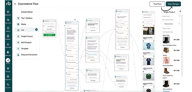 In Flow Builder, click "Create Flow" and design your WhatsApp Catalogue using elements like Text, Quick Replies, Images, and Product Lists.
